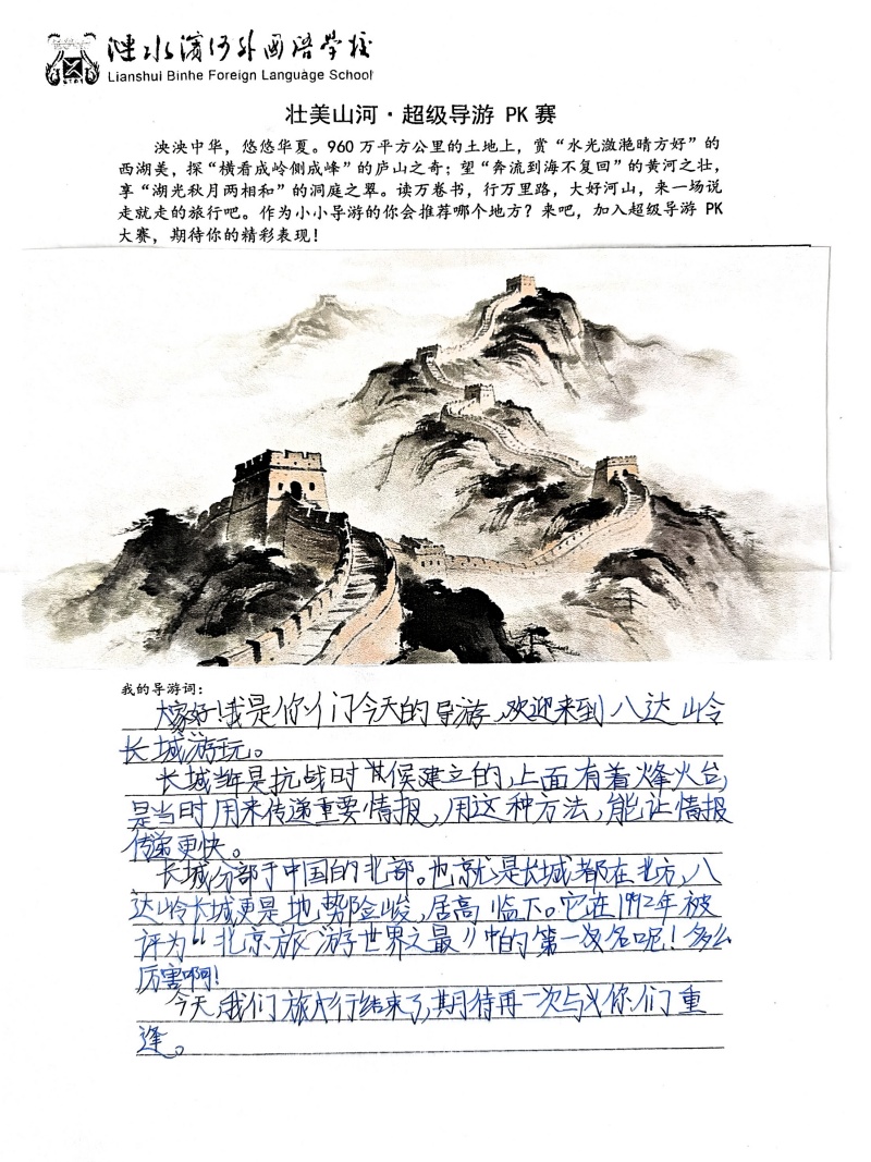 超级导游PK赛上,小导游们依次登台。有的分享泰山日出的震撼,有的介绍九寨沟的五彩池水。台上同学侃侃而谈,台下听众聚精会神。同学们在知识的海洋里,领略了祖国的壮美,也开拓了眼界。