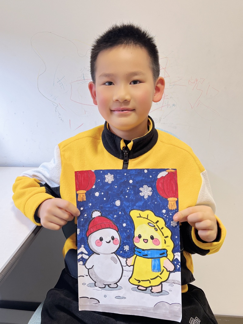 除了美食体验,创意绘画环节同样精彩。孩子们拿起彩笔,在画纸上描绘出心中的冬至图景:飘雪的庭院里摆着热气腾腾的汤圆,家人围坐在一起的温馨画面,还有冬至时节的传统习俗如挂灯笼、贴窗花等。每一幅作品都充满童真与想象力,不仅展现了孩子们对冬至的理解,更将传统节气的文化元素以艺术的形式呈现出来。