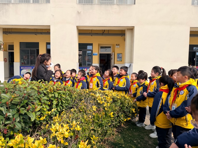 活动伊始,各班级在班主任的带领下有序集合,明确活动纪律与流程后,手持植物识别卡片开启了校园植物探索之旅。沿着预设的安全路线,班主任们化身“自然老师”,为孩子们细致讲解校园内各类常见植物的名称、外形特征、生长习性,以及它们净化空气、美化校园的重要作用。孩子们认真倾听、细心观察,对照识别卡片与同伴交流探讨,在随机提问互动中积极作答,一张张小贴纸的奖励,更激发了大家认识植物、探索自然的热情。