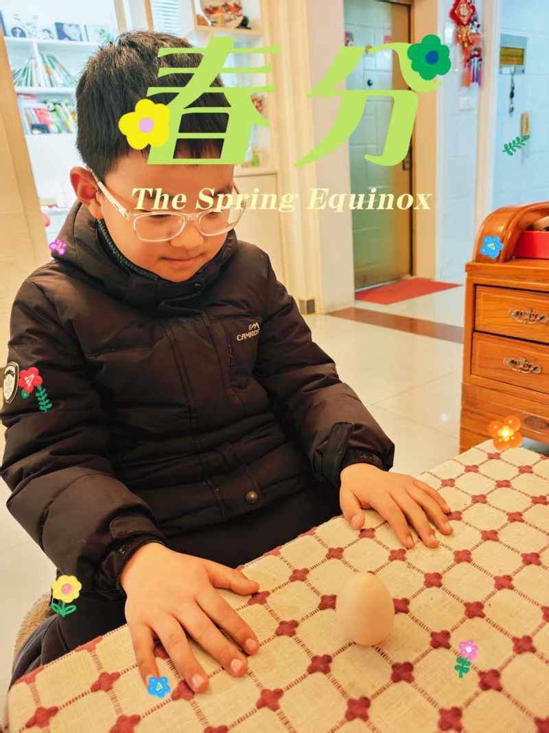 竖蛋挑战中,孩子们跃跃欲试,或轻扶鸡蛋耐心调整,或借助纸巾寻找支撑,在反复尝试、不断探索中解锁立蛋技巧,不仅感受了春分引力平衡的科学趣味,更体会到传统习俗的独特魅力。