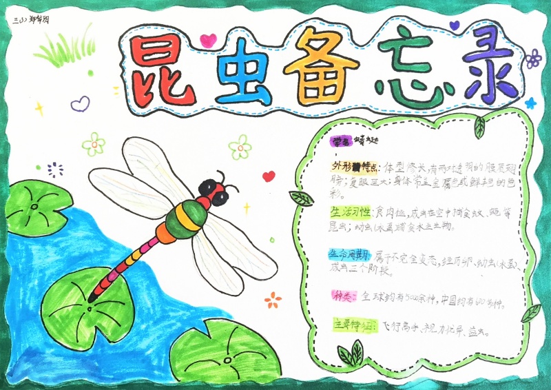 当课文里的文字遇见鲜活的自然,当好奇的童心邂逅灵动的昆虫,涟水滨河外国语三年级的同学们在学习《昆虫备忘录》一课后,在老师的指导下用画笔与文字完成了一份充满创意的实践活动,为我们展现了一个妙趣横生的昆虫世界。