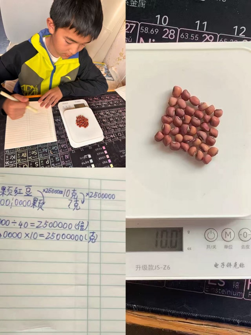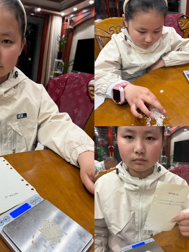 活动过程中,同学们化身小小数学家,分工协作、有条不紊。大家先通过数一数、量一量、称一称、算一算的方式,精准测量出10张纸、100粒米、1枚硬币的基础数据,再通过严谨的数学推算,一步步得出一亿张纸的厚度、一亿粒米的重量、一亿枚硬币叠放的高度。