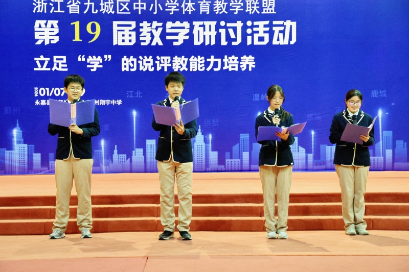 “当风从瓯江畔的书页间穿过,贝壳的纹路里,有我们并肩辨认的潮歌……”诗朗诵《翔宇词典——我们的温暖诗行》贯穿休业式始终,学子们以清澈的声音,将校园里的一草一木、一情一景化为温暖诗句,唤醒所有人心底关于翔宇的集体记忆。