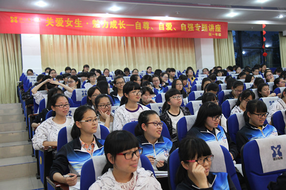 “带着满满的爱和祝福,我今天来到了这里跟大家分享魅力成长的主题。”2016年5月26日晚上,叶适报告厅灯火通明,高一全体女生齐聚一起,听取心理专家程丹老师《关爱女生魅力成长——自尊、自爱、自强专题心理讲座》,高一年级部主任李坚出席讲座会,讲座由李向龙老师主持。
