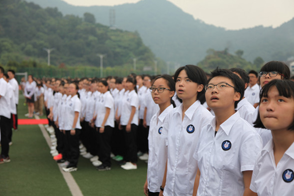 开学典礼分五个篇章进行,即鸾翔凤集、鸾生腾渊、鸾飞凤舞、鸾修尚德、鸾翔宇内,表达一个主题——“争做最美翔宇人”,升旗、合唱、颁奖、祝福、致辞等环节穿插其中,环环相扣。