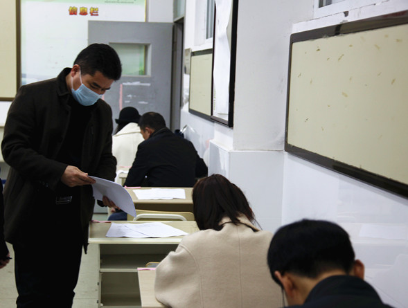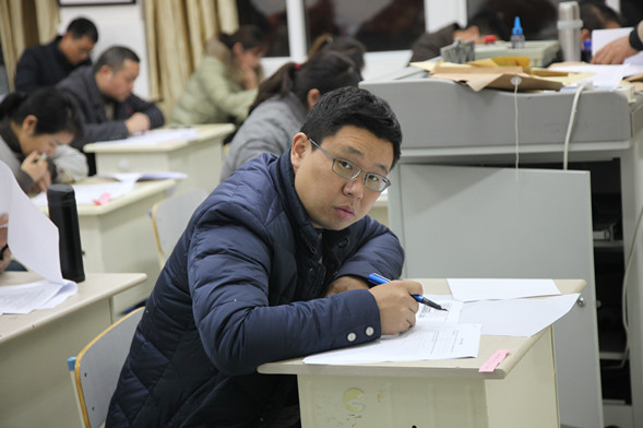 “有点小紧张。”2018年1月17日晚6:25分,温州翔宇中学高中部全体文化课老师参加了由校长室组织的考研竞赛活动。学校常务校长、高中部校长潘文新,学部副校长朱加丰、严强,学部考试中心负责人梁鸿老师到场巡考。