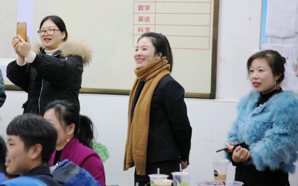 享用美食,感受生活美好 各种美食摆满桌子,水果、糕点、瓜子、热饮,大家尽情享用。班委会、家委会事先做足功课,高一(10)班家委下午四点多就开始筹划晚会,彩色气球装扮教室,使得整个教室充满节日的氛围。