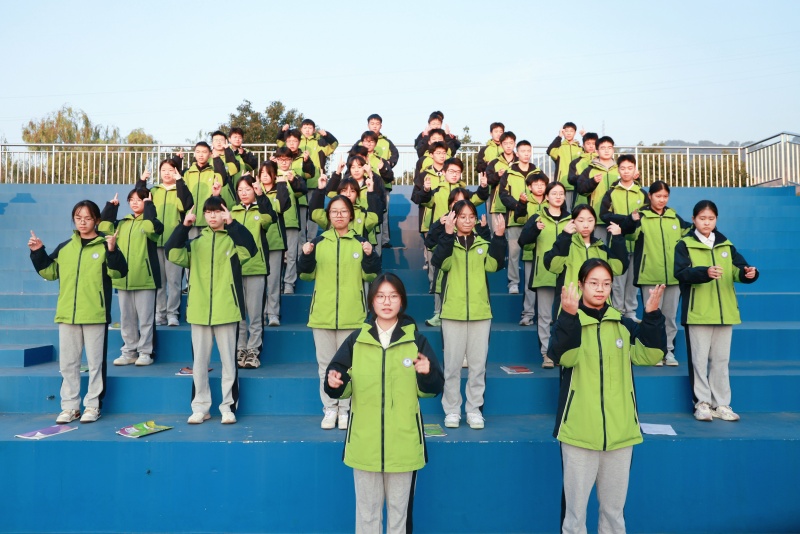 仪式最后,高一(10)班、高二(11)班、高一(12)班同学带来了精彩的课间桌舞展示。台上同学动作整齐、充满活力,台下同学积极响应、热情舞动,整个运动场洋溢着青春的朝气,用跃动的身影诠释了“温暖同行”的主题内涵。