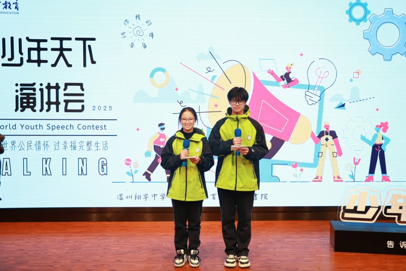 12月25日晚,温州翔宇中学第六届“少年天下”演讲会总决赛在弘景楼报告厅举行。来自高一年级的13名学生同台竞技,用语言表达思考,用声音传递情感。