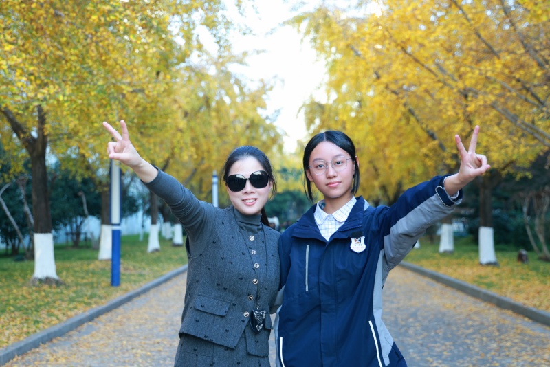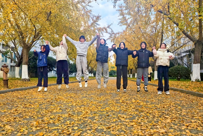 这份期盼已久的秋日盛景,瞬间点燃了校园的活力。课余时间,银杏大道上人影绰绰,欢声笑语不绝于耳。同学们三三两两,或漫步于铺满落叶的金色地毯上,聆听脚下沙沙的秋日私语;或兴奋地举起相机,以璀璨的银杏为背景,记录下与同窗、师友共度的美好瞬间。教师们也纷纷加入这赏景的行列,在繁忙的教学工作之余,于此感受自然馈赠的宁静与诗意,与学生们一同分享这份季节限定的惊艳。