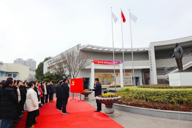3月5日清晨,全体党员教师齐聚周恩来铜像广场,举行“缅怀伟人守初心,立德树人担使命”主题党日活动。党支部书记、校长赵树青带领全体党员重温入党誓词,铿锵誓言在广场上空回荡。