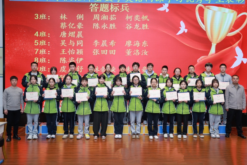 大会首先表彰了寒假学习中表现突出的优秀学生。基于铭师堂数学英语网课学习数据,依次颁发“学习标兵”“答题标兵”“笔记之星”“进步之星”四项荣誉。获奖同学以自律勤奋的态度,在假期中实现自主提升,成为年级学习的榜样。高中部校长助理兼教务处主任王乃林老师、铭师堂杨佳麟老师、教科室副主任刘金龙老师、高一年级副主任叶有彬老师、数学备课组组长原正老师、英语备课组组长刘淑倩老师等嘉宾为获奖学生颁奖。