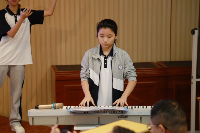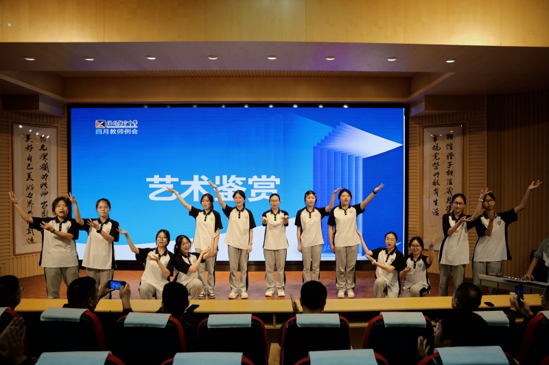 ID合唱团带来《立春》等作品展演,舞台两侧配以打击乐与电子琴伴奏。该团刚获县艺术节合唱一等奖并晋级市赛。高二学生黄熙雅分享感悟:“合唱不是一个人的出彩,而是一群人的默契。”她表示,艺术教育让同学们学会倾听与协作,也印证了翔宇“和整个世界站在一起”的育人理念,教育的尽头不只是名牌大学,更重要的是如何去飞向更美好的自我。
