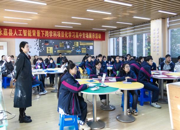 为深入推进人工智能与教育教学融合,探索跨学科项目化学习新模式,1月14日,永嘉县第二职业学校举办了“人工智能背景下跨学科项目化学习高中专场展示活动”。永嘉县教师发展中心书记邹俊杰、研训员应根球及全县技术与工程试点校教师代表参加。本次活动由应根球主持。