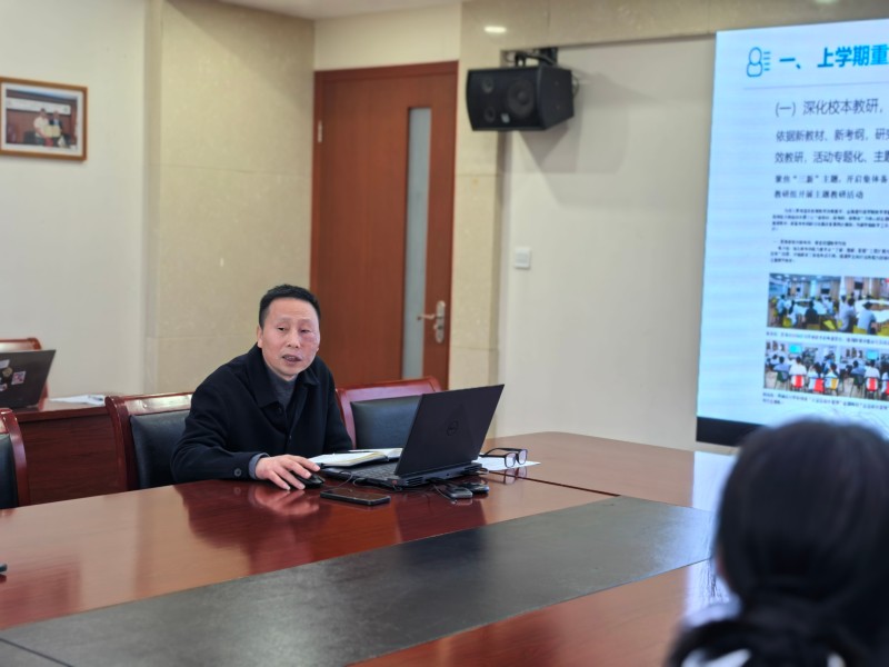 夏林苏作总结讲话,充分肯定了近年来扎实的教科研工作,在校本教研、论文课题及师生大赛等方面取得突破,同时对新学期教科研工作提出四点要求:一是要提高思想认识,聚焦立德树人根本任务,将教科研工作与学校人才培养目标紧密结合,以研促教、以教促学;二是要狠抓工作落实,各教研组要对照工作部署,细化实施方案,压实工作责任,确保各项教科研任务落地见效;三是要强化团队协作,发挥名师工作室、骨干教师的引领作用,搭建青年教师成长平台,形成上下联动、齐抓共管的教科研工作格局;四是加快 AI 课程落地,本学期完成 225 节 AI 课程、覆盖 2250 名学生,按“先排课再配设备”思路,利用课余时间开展教学,让师生先体验平台操作再融合学科内容开展教学。